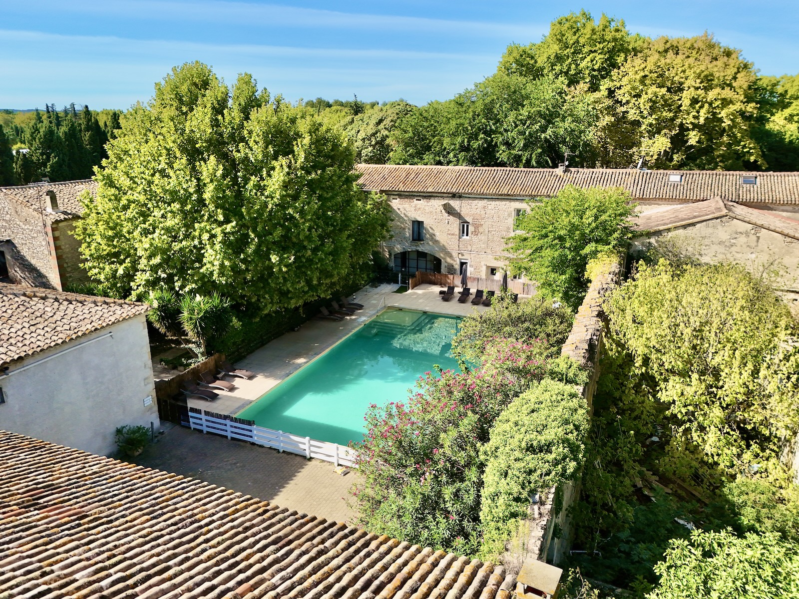 Ici, la terre a vu défiler les saisons, les rires d’un club de tennis, les fêtes d’été, les heures calmes d’un hôtel de charme… Aujourd’hui, à quelques minutes de Nîmes, Le Galambre est ce fil tendu entre passé et présent — un lieu d’élégance, de nature, et de mémoire.